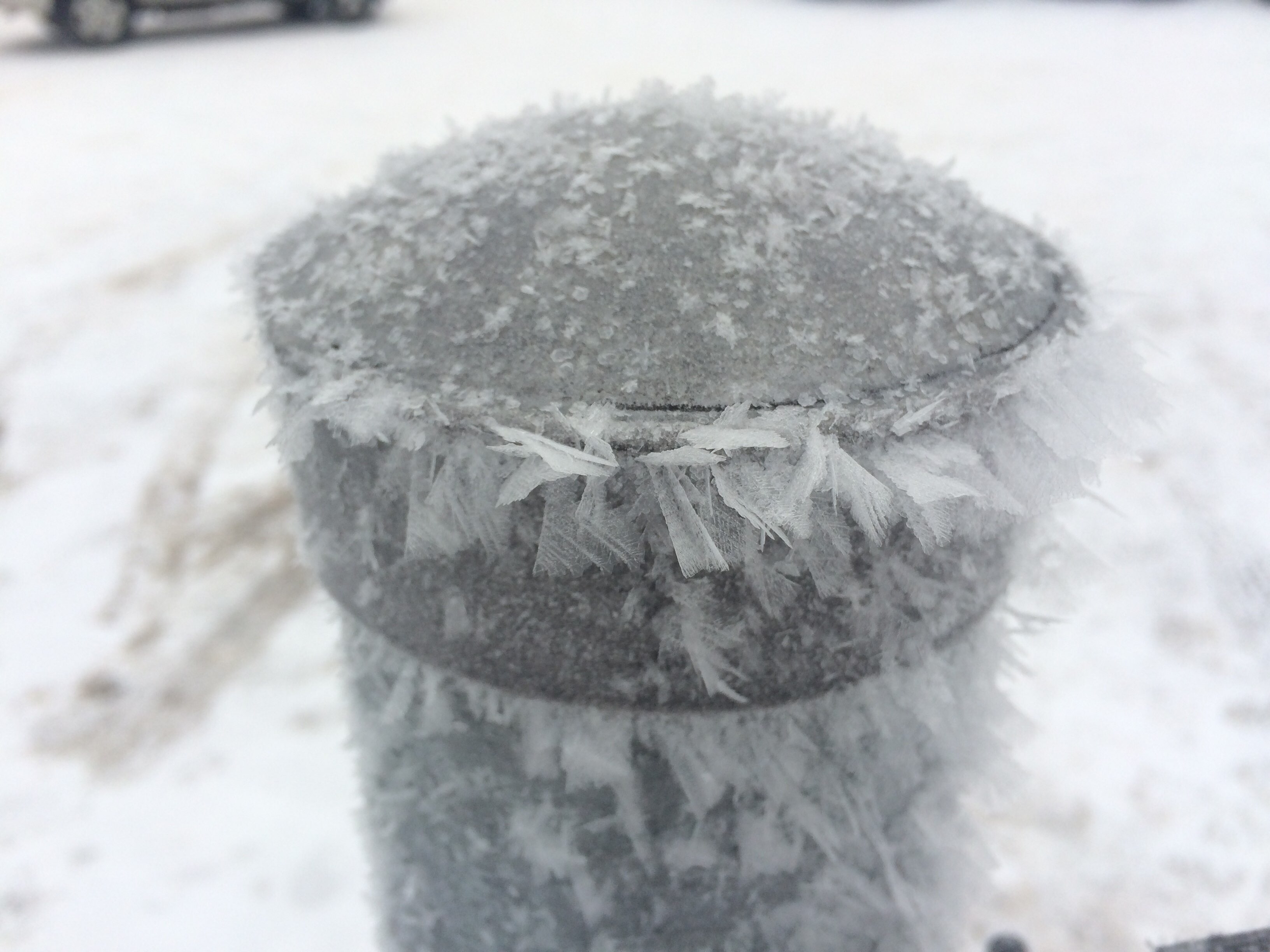 A pole covered in ice flakes. I haven't seen this before or since. Apple iPhone 5S