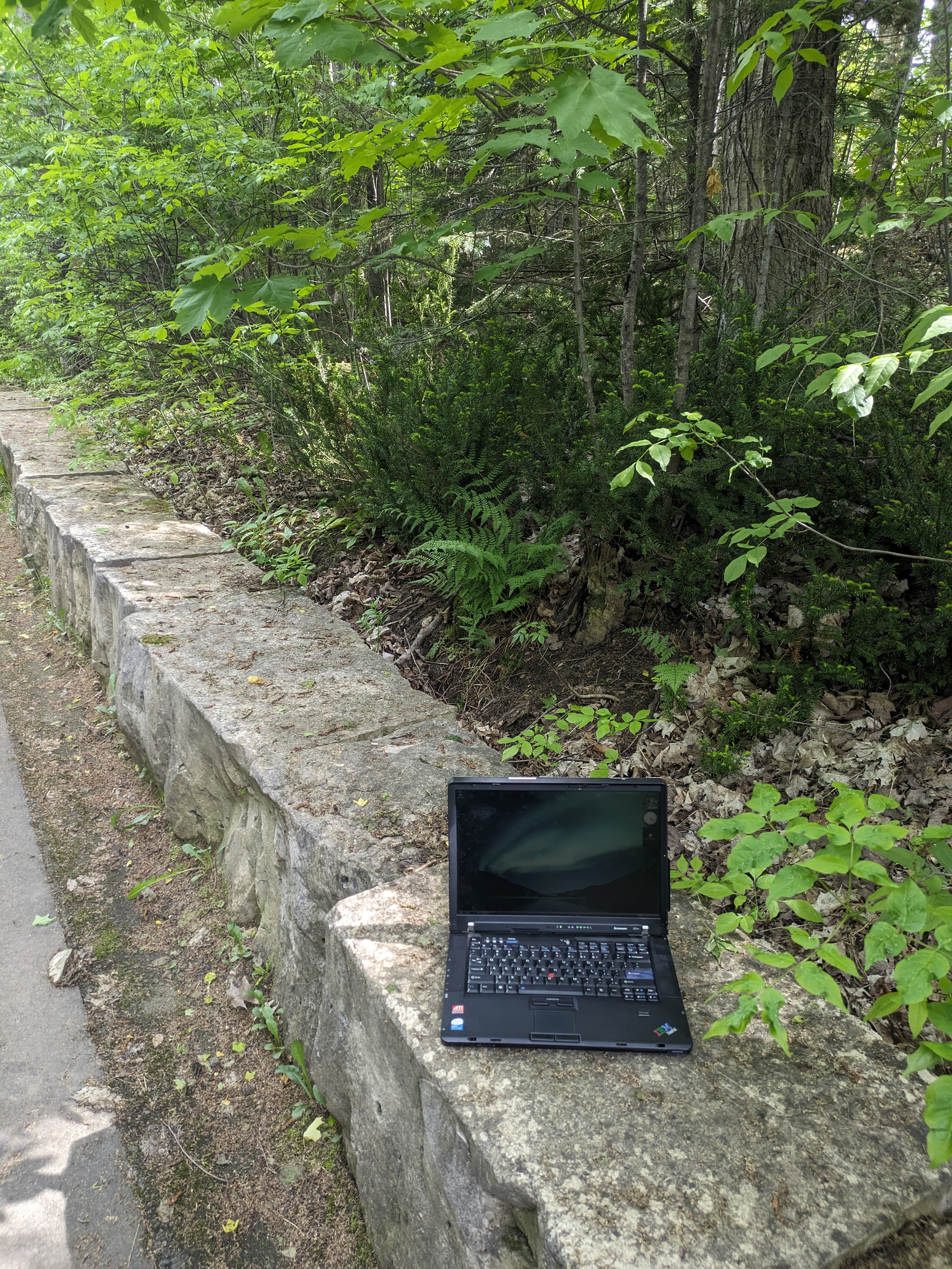 My ThinkPad Z61m, running Windows Vista, around some trees. Google Pixel 7a